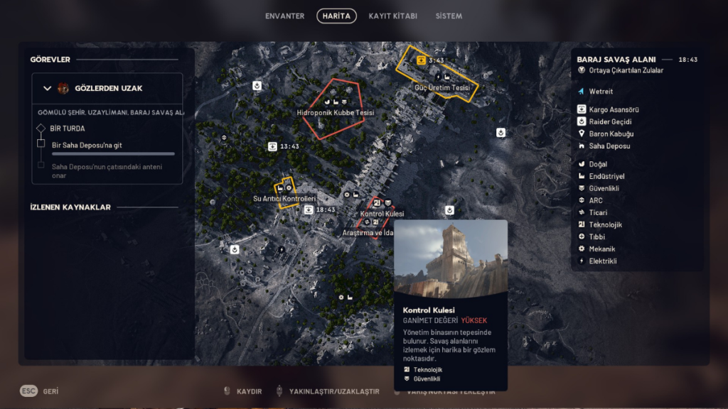 - Haritadaki bölgelerin üzerinde, ganimet değerleri yazacaktır. Yüksek ganimet içeren bölgeler genellikle kırmızı ile işaretlidir. Oyuna yeni girecek oyuncular için bu kırmızı bölgeleri önermiyoruz. Daha çok turuncu ve beyaz alanlarda temel eşyaların lootunu yaparak çıkmanız daha sağlıklı olacaktır. Bunun nedeni de kırmızı bölgelerde düşman yoğunluğunun fazla olması. Bir yeni başlayan olarka, teçhizatımız ve bilgimiz sınırlı olduğu için bu bölgelere ilk etapta girmemek sizin yararınıza olacaktır.
