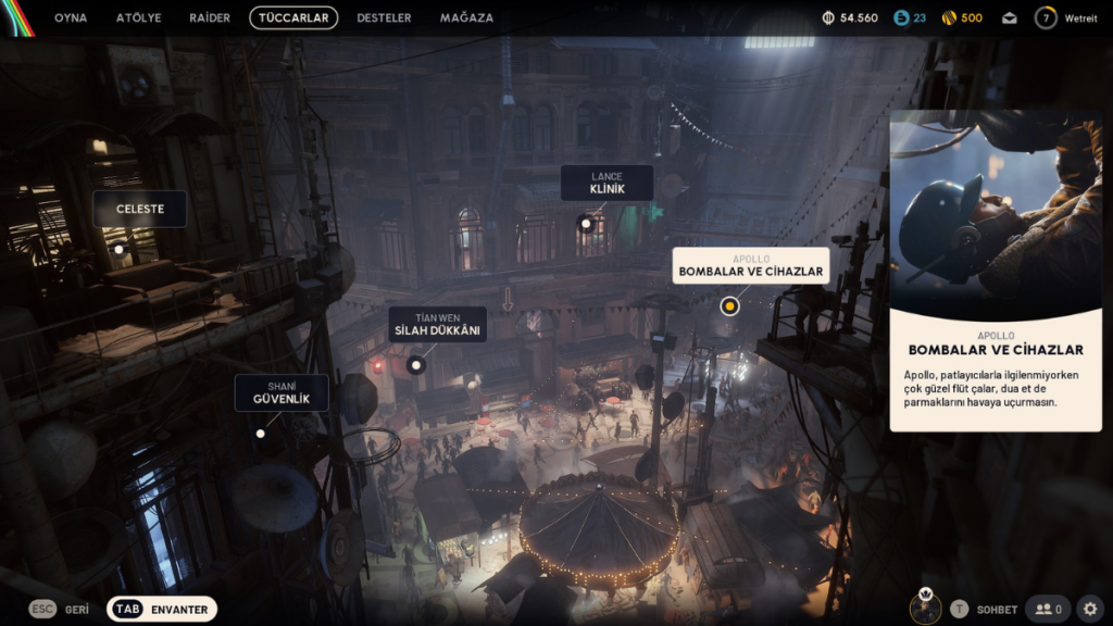 Oyunda ekipman almak için başka bir alternatifimiz daha bulunuyor. Bunlar da tüccarlar. Her ekipman türü için ayrı bir tüccar bulunuyor. Silah, sağlık, teçhizat ve güvenlik gibi ürünleri, ilgili tüccarlardan satın alabiliyorsunuz. Tabii, bu tüccarların tezgahlara göre bazı dezavantajları da bulunuyor. Bu dezavantajlardan en büyüğü ise maliyet. Tezgahlarda kolaylıkla ve düşük gereksinimlerle ürettiğiniz ekipmanları, tüccarlardan yüksek bedellerle satın almanız gerekiyor. Bu nedenle, zorunda kalmadıkça tüccarlardan alışveriş yapmamanızı öneriyoruz. Bunun yerine ücretsiz teçhizat ile haritaya atlayıp gerekli malzemeleri toplayarak kendi üretiminizi yapmanızı tavsiye ediyoruz.