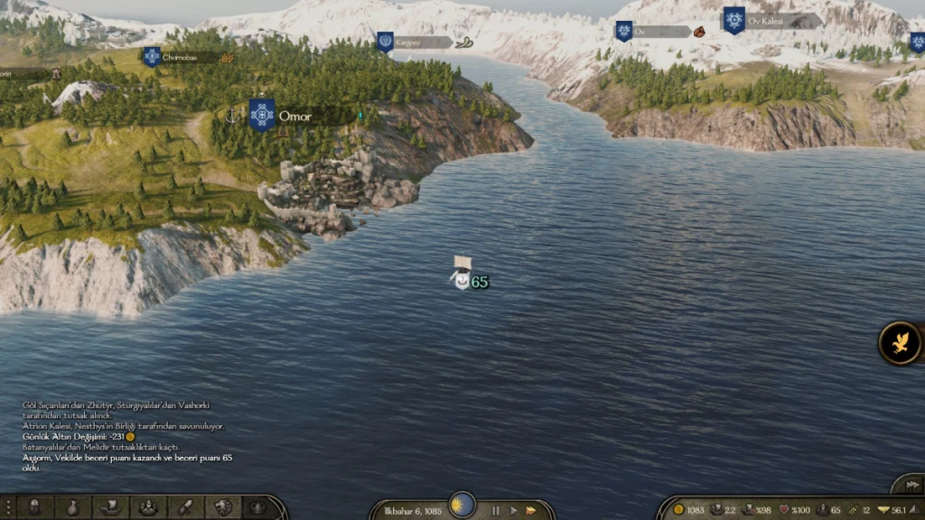 Bu DLC’nin alametifarikası elbette deniz savaşları ve deniz veya akarsuların artık oynanışın bir parçası olması. Fakat bundan fazlası var. Oynamaya başlar başlamaz fark ettiğim ilk şey Kalradya’daki birçok şehrin yerinin değiştiği oldu. Mesela Batanya ve Sturgiya toprakları arasında bir göl var. Aynı şekilde, diğer medeniyetlerin sınır bölgelerinde de bu tür göller belirmiş. Bazı şehirler “Liman Şehri” olarak belirlenerek kıyıya inerken bazıları da kıyıya yakın olmalarına rağmen bu tasarım tercihinden etkilenmemiş. Ancak Kalradya, büyük oranda şekil değiştirmiş diyebilirim.