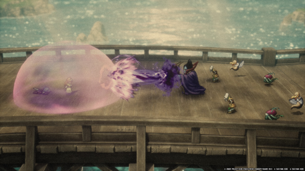 Bunun dışında şehirler, zindanlar ve daha açık alanlar ve bu kısımlar yine özellikle sanat tasarımı tarafında parlıyorlar. HD-2D grafikler retro ama bir o kadar da yenilikçi bir hava kattığı için bence zamansız bir tarza sahip. Özellikle belli başlı debuff’ları silmeye ve oyunu kaydetmeye yarayan kiliselerin tasarımları olsun, efektler, ara sahneler ve konuşma kutucukları olsun; hepsi atmosferi tamamlayan unsurlar. Ben oyunu Nintendo Switch 2’de oynadım ve görsel olarak epeyi hoşuma gitti. Teknik bir sıkıntı ile de karşılaşmadım.