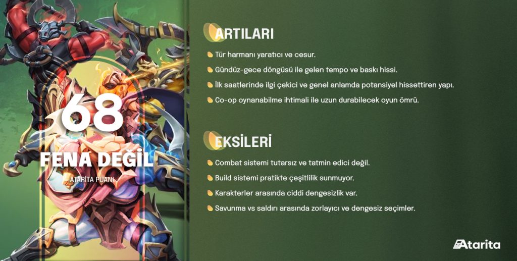 | Atarita sizin için inceledi! Editörlerimiz her oyun incelemesine saatlerce emek harcıyor ve bilmeniz gereken tüm detayları objektif şekilde ele alıyor. Nasıl yaptığımızı merak ediyorsanız inceleme politikamıza göz atabilirsiniz. |