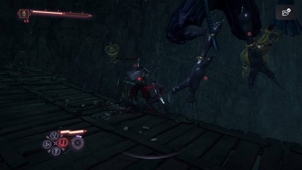 Kolu bacağı kopan düşmanlarınızı üçgene basarak infaz ediyorsunuz. Bu infazlar oldukça önemli. Çünkü Ninja Gaiden’da düşmanınızın her iki ayağını bile kesseniz sizin üzerinize atlayacak ve bir fedai saldırısı yapacak. Tehditi ortadan kaldırmak bundan dolayı büyük önem arz ediyor. Üçgen tuşuna basılı tutup ultimate teknik moduna giriyorsunuz. Burada tamamen şarjladıktan sonra yakumo düşmanlar üzerinde hunharca kombolar çıkarıyor. Ve bir şey söyleyeyim en sevdiğim okur… bu insanı çok tatmin ediyor.
