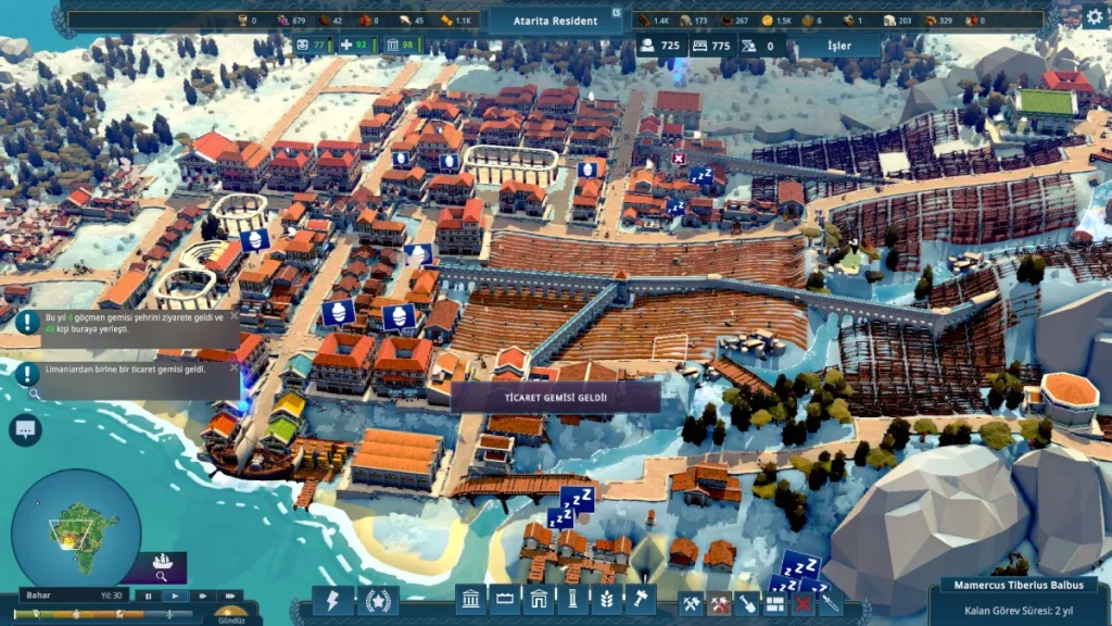 Eğer geçen yıl piyasaya sürülen Anno 117: Pax Romana‘yı oynadıysanız Nova Roma ile olan benzerlikleri dikkatinizi çekecektir. Oyunun küçük kurgusuna göre Roma İmparatorluğu çöküşün eşiğindeyken, şehri terk edip adaya yerleşen bir grup göçmeni canlandırıyoruz. Biz ilk kafileyle yerleşkeye hayat vermeye başlasak da düzenli olarak yeni göçmenler geliyor ve adamızın durumuna göre yerleşip yerleşmemeye karar veriyorlar. Oyundaki nüfus sistemi tamamen göçmen gemileri ve yerleşmeyi seçen göçmen sayılarıyla yönetiliyor. Daha fazla insanın daha fazla iş gücüne tekabül ettiği bir iş gücü yönetimi de bu vesileyle oyunun bir parçası oluyor.