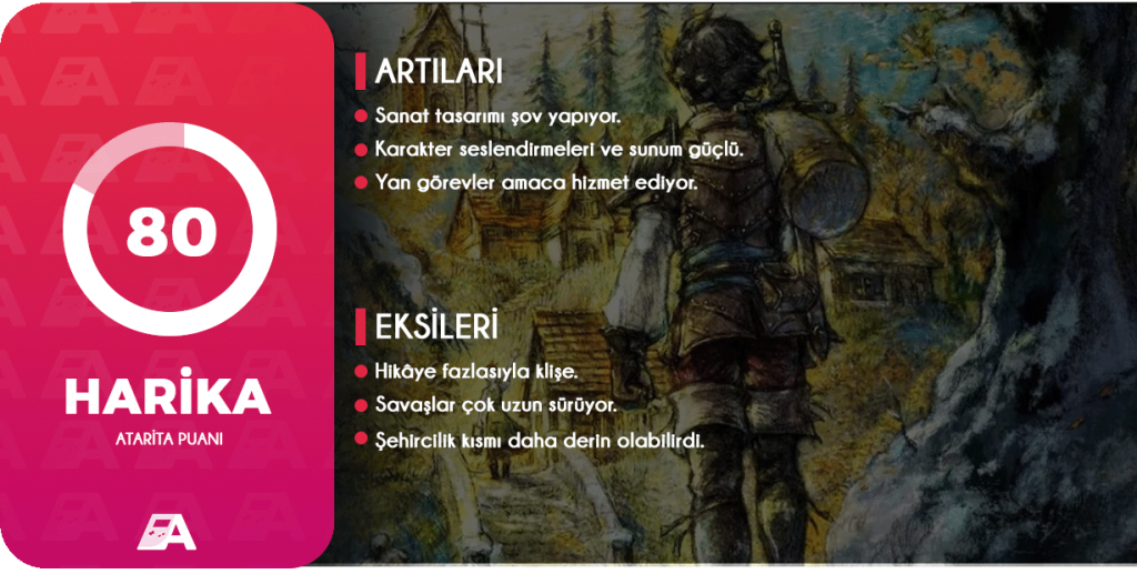 Kısadan hisse Octopath Traveler 0 yine bizim bildiğimiz, sevdiğimiz JRPG’lerden olmuş. Eksik kısımları elbette var ve uzun oynanış süresine baktığımız zaman en azından savaşları daha akıcı yapmalarını isterdim. Hikâye tarafındaki eleştirilerim fazla öznel olduğu için dolu dolu yargılayamam ama genel olarak ortaya çıkan oyundan memnun olduğumu söyleyebilirim. Er ya da geç finale doğru işler yine “anime” tarzına geçip bayağı karışsa da inanıyorum ki Japon kardeşler de bir gün kalemlerini dizginleyebilecekler. Okuduğunuz için teşekkürler, hoşça kalın!